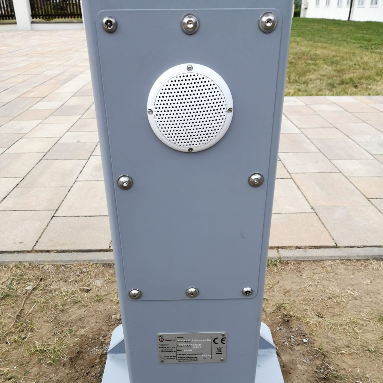 To jeden z elementów wykończeniowych urządzenia. Pomaga osobom niewidomym lub słabowidzącym zrozumieć zasady korzystania z ławki oraz zasugerować, że mogą podładować na świeżym powietrzu telefon zupełnie bezpłatnie.